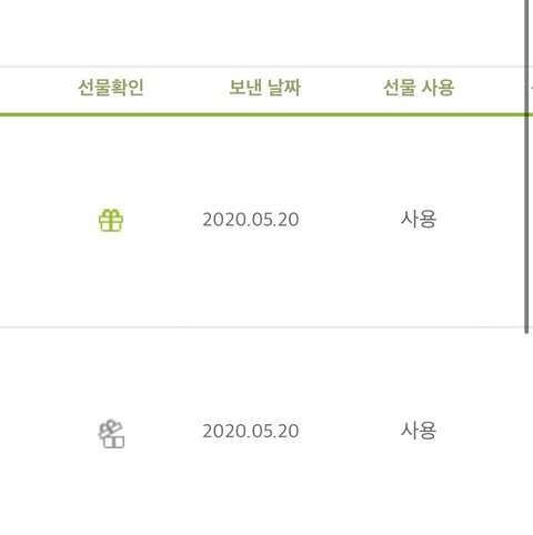 위에랑 아래랑 무슨 차이야?? 왜 위는 선물이 안열렸고 아래는 열렸지(?) 둘다 사용이라고 써진건 사용했단뜻이지??