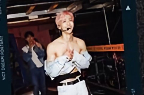무대 끝나고 옷 빨리 갈아 입다가 찍혔대ㅋㅋㅋㅋㅋㅋ 재민이가 버블로 말 함!!