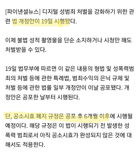 이번에 "불촬물 시청 다운 소지하면 처벌"이 들어간 건