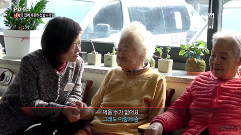 미음 같은 부드러운 식사를 하셔야하는 할머니 분들께도 그냥 다 똑같은 식사가 제공되어서 할머니는 물에 밥을 말아드셨고 그걸 듣고 여가부 장관분이 질문하자 돌아오는 대답은 그냥 가관