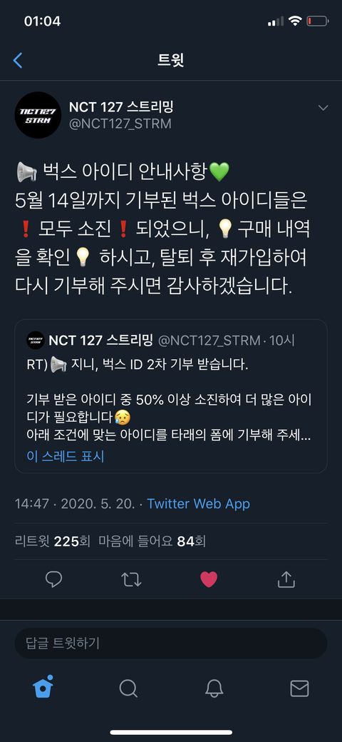 아까 스밍팀이 아이디기부 조금 심각하다고 햇엇던거 같은데 14일까지 기부한 즈니들은 탈퇴하고 재가입해서 다시 기부하자!!!