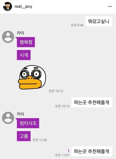 카이 ㅇ하나 보낸거 개웃김ㅋㅋㄱㅋㄱㄱ