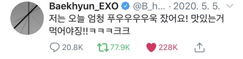 변백현 말투 ㄹㅇ 착한초딩체 ㅋㅋㅋㅌㅌㅋㅌㅋㅋㅋㅋㄹㅋ 트위터 가서 아무거나 하나 가져옴 근데 말투 너무 귀여워