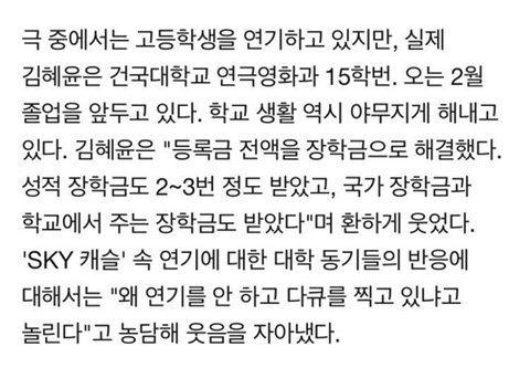 등록금 전액을 장학금으로 해결했다고 함 ㄷㄷㄷㄷ