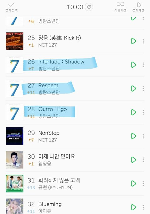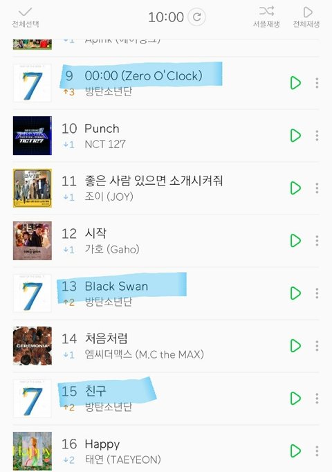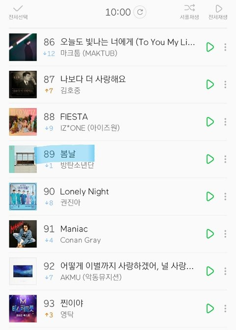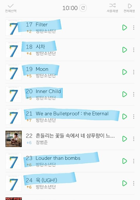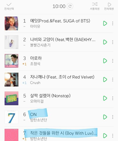 멜론차트 100개곡 중 방탄소년단 노래갯수:16개