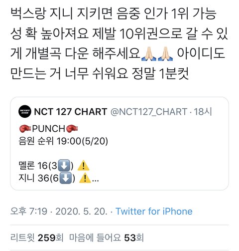 얘들아 바 이 브 는 무조권 5위 이내여야해~