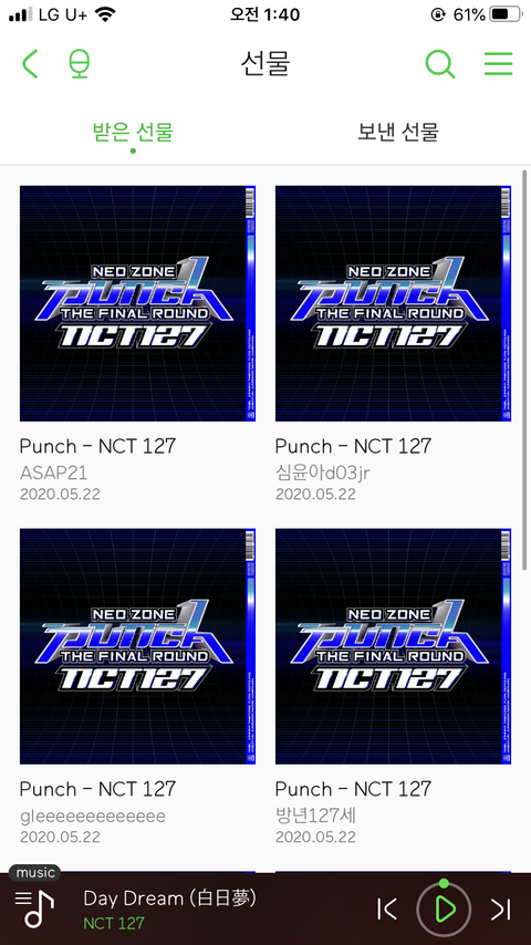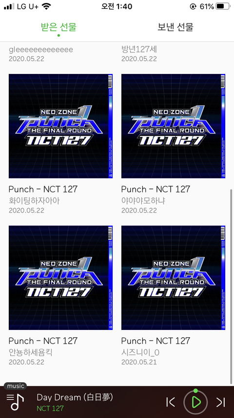 오늘 선물 보내준 즈니들 고마워 내일도 우리 해보자!
