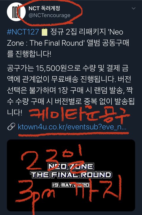 음방에 반영될려면 23일 오후3시까지만 사야되는거 알쥐? 오프는 24일까지랭 공구로 사는건 케이타운만!!! 케이타운 링크 저기서 들어가!!! 음반점수는 무조건 확실히 따놓고 들어가야됨
