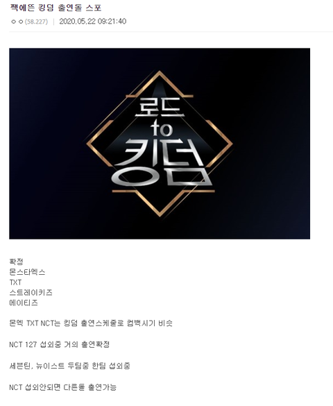 저기에 엔시티는 왜 있어? 엠넷이랑 사이 안좋은건 둘째치고, 나가서 얻는게 뭐가 있음? 절대 싫어 으으