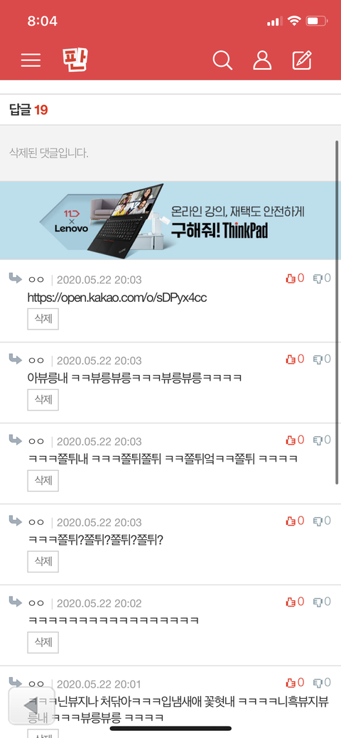 댓글 많은 톡