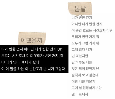 다 진심이여서 봄날과 유사한 부분만 사진으로 만들어서