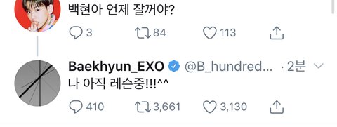 오늘 팬한테 답글 달아준거•• 새벽 한신데 아직도 레슨 받는대 ㅋㅋㅋ 노래를 그렇게 잘하면서 한번도 안쉬고 새벽까지 계속 노래연습하네 이러니까 잘되는듯