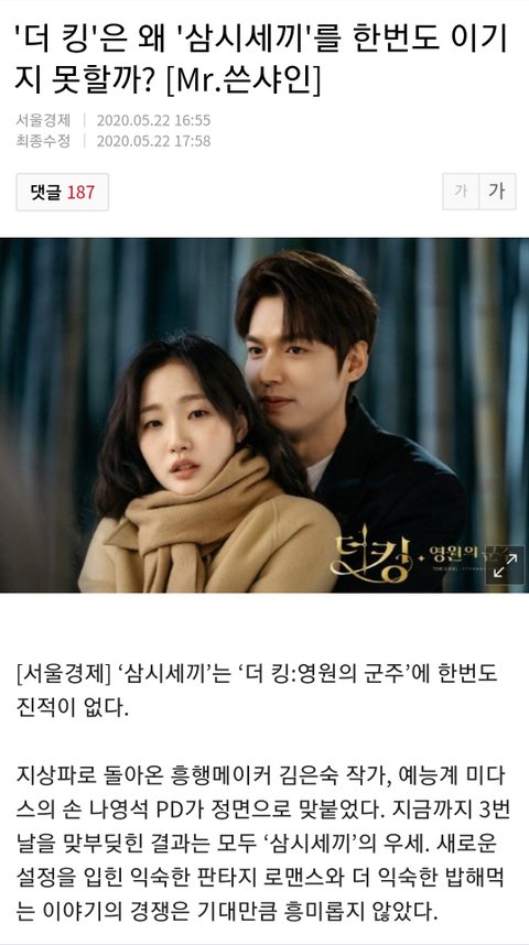 그리고 자기가 드라마가 재미없으면 안보면되잖아 왜맨날 보지도않는 드라마인 더킹 기사 굳이 클릭해서 재미없다고 악플남겨?