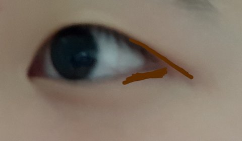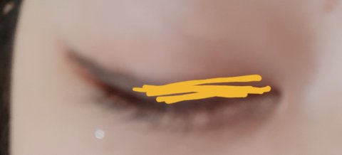 이 부분 말하는 거야. 이부분 진한갈색으로 아이라인 이랑 이어지게 그려주면 눈 커보여 근데 눈 큰사람들은 굳이 하지마 지저분하거나 좀 화장진해보일 수도 있어