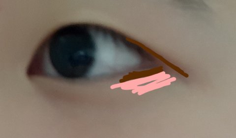 약간 이런식으로?칠해주면 돼(똥그림이야..미안 위에 눈꼬리부분에 그린건 아이라인 표현한거야)
