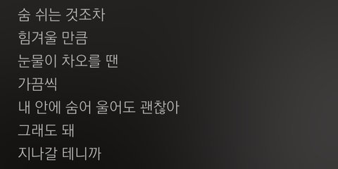 가사도 너무 예쁘고 중반부 백현의 '이젠혼자가 아닌걸'이부분이 난 너무 좋음. 마지막에 종처럼 울리면서 끝나는게 여운이 축축하게 남는다꒦ິ^꒦ິ