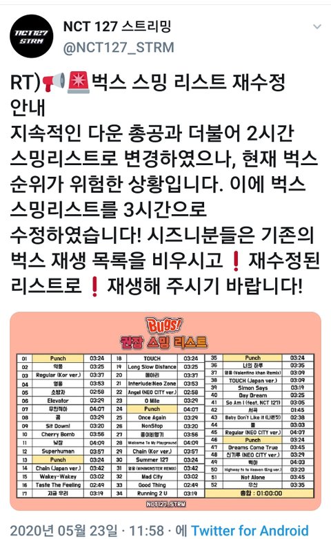 ⚠️⚠️벅스즈니들 슴리스트 또 재수정된거 알아???