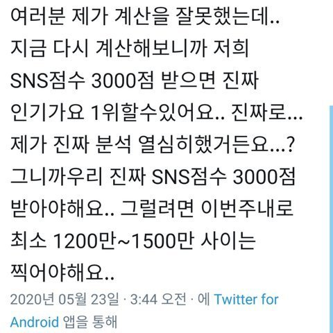 @ : 만약 뮤비 조회수 동발팀보다 낮으면 점수 아예 없어? ㄴㄴ 나머지는 차등분배에요 그래서 최대한 격차 줄여야 합니다~~~~~~ 잘하고 있어 즈니들 조금만 더 힘내보자!!