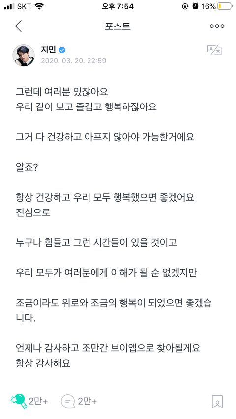 "여러분, 항상 제가 어떤 마음으로 여러분을 보는지 알고 있을 거라 생각해요. 옆에서 함께 걸어 주신 덕분에 제가 한 발자국 더 나아갈 수 있습니다. 여러분을 더 사랑할 수 있게 노력하겠습니다."