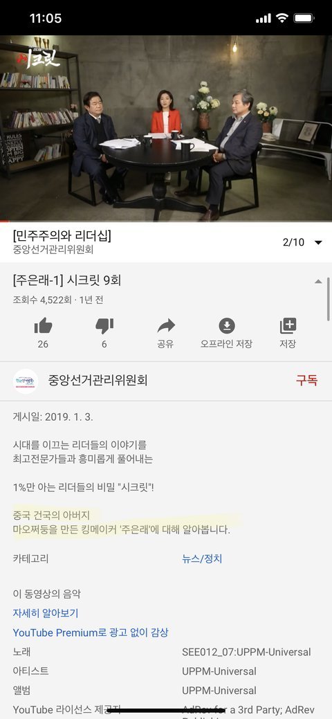 저 프로그램 10회중 6회가 중국 공산당 정치인이래