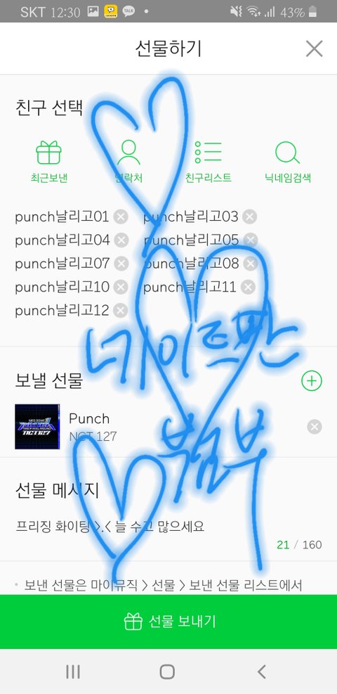어제는 판하는 친구 일곱명, 총공계 셋 이렇게 보내구 오늘은 온리 스밍계정 열개에 보냈어 ^.~