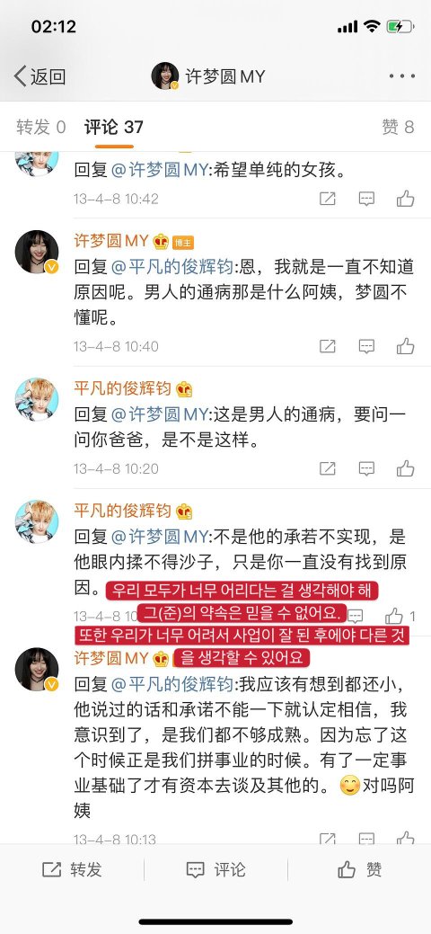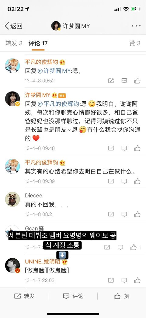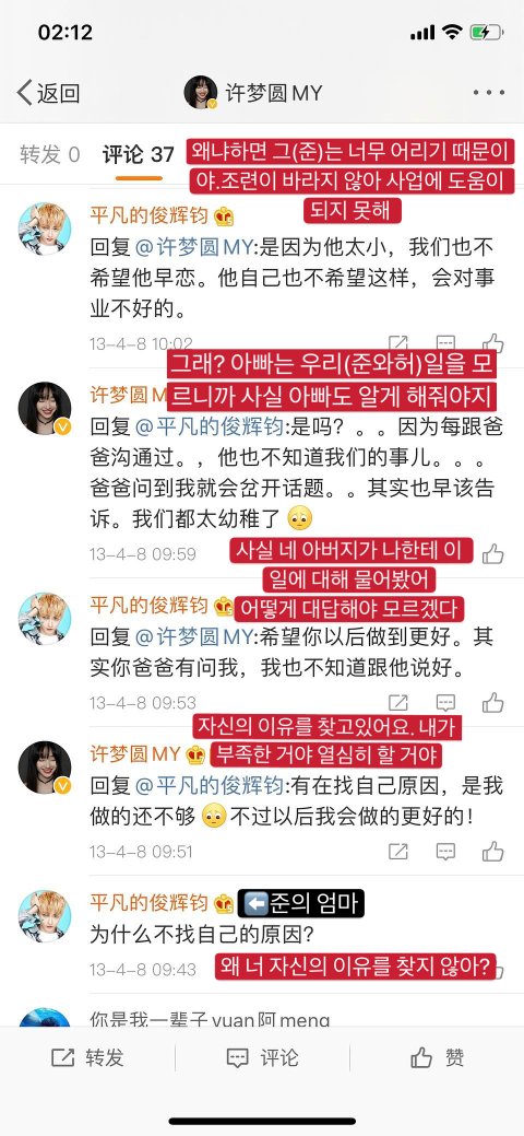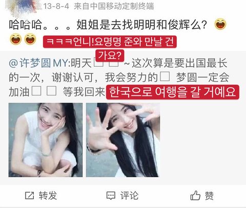 현재 중국 게시판에서 큰 화제가 있어요 7년전 준의 엄마와 썸녀가(허멍원 한 중국 배우 1994 선전인 )대화 같은데 그리고 그때 세븐틴 동기 연습생 요명명의 댓글