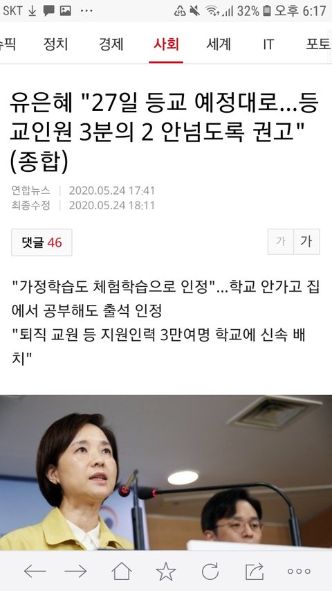 유은혜 "27일 등교 예정대로…등교인원 3분의 2 안넘도록 권고"