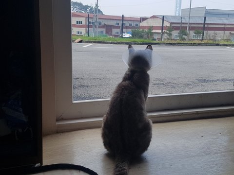 영역싸움을 했는지 머리에 상처가 있어서 병원 갔다왔는데...(병원비가 사람보다 더 비쌈)