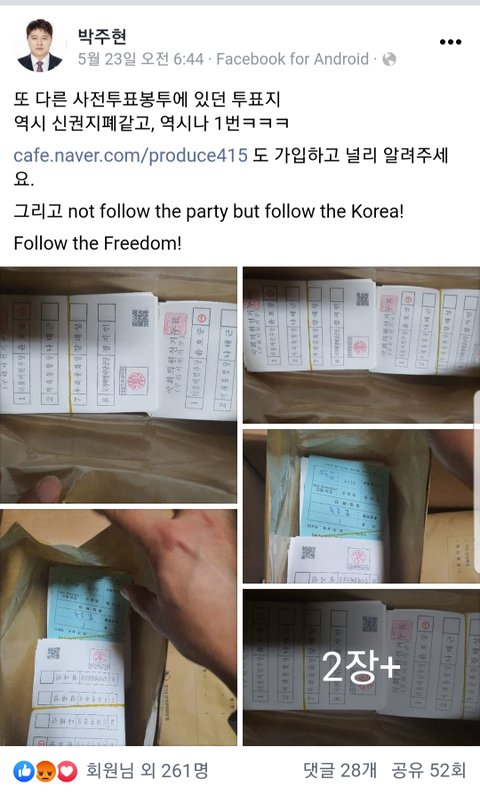 그리고 1번 찍은 사전 투표지는 저렇게 손도 안탄듯이 깨끗하지