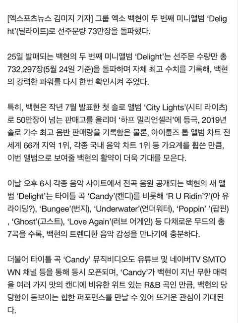약 8시간 후 백현이 솔로 2집 delight 공개~~❤️