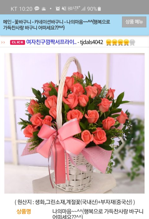 여친하고 100일 기념이라 네이버 FM플xx 꽃집에서 주문했는데 아래 사진에 꽃이 똑같아 보이나요?