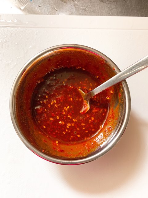그래야 아주 약간의 숙성에도 재료들이 잘 녹아들어 맛이 잘베인다. 비빔장에 발사믹을 너는 이유는 감칠맛과 뒤끗이