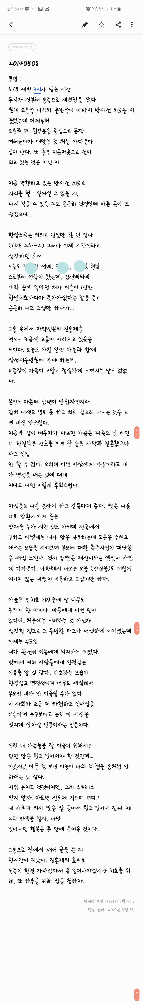 7월 어느날 시한부 선고를 받게되고...아파서 침대에서 일어나지 못하고있는데 일어나라고 억지로 아빠를 일으키려는 엄마를 죽여버리고 싶을 때도 있었고.. 가족이 전부 탄 상태에서 아빠는 쉬고싶다..엄마는 치료를 더 받자 옥신각신... 아빠 앞에서 처음으로 고함을 쳤었네요 생각해보니..그만좀 하라고..
