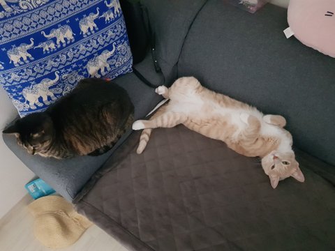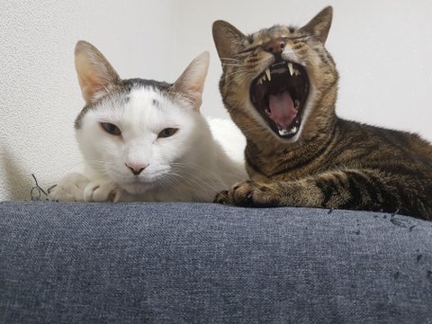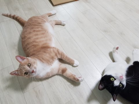 첫째 고등어냥-슈가와 둘째 젖소냥-누노에요.