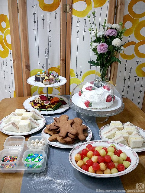 어쩔 수 없이 아랫집 친구 한 명만 불러서 조촐하게 티파티를 열었습니다.