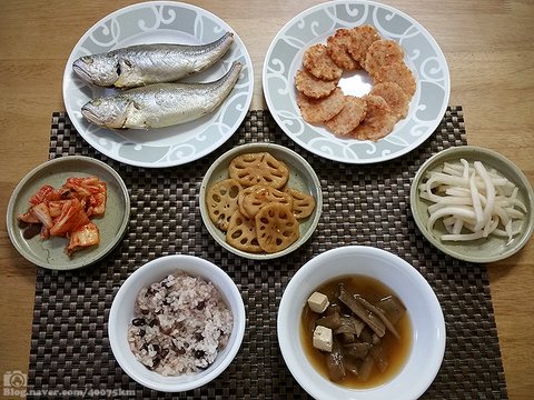 나름 시간 들여가며 열심히 준비했는데도 반찬, 특히 동물성 단백질이 부족하다는 생각에 조기도 두 마리 쪄 냈지요.