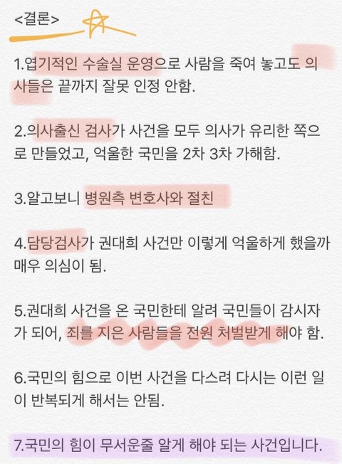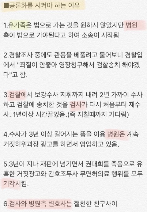 #6. 현재 유가족은 의사 출신 담당검사가 기각한 ‘무면허의료행위 및 무면허의료행위 교사 방조 혐의’에 대해 서울고등법원에 재정신청서를 제출하고 결과를 기다리는 중.