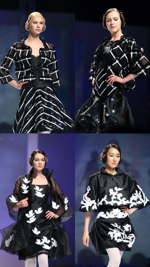그렇다고 쇼에는 흔히 떠올리는 완전 희한하고 휘황찬란한 드레스와 예복들만 나오느냐, 그건 또 아니지. 그래서 너희들의 오해를 깨기 위해 1편은 가장 먼저 블랙/실버/화이트의 무채색 투피스들을 가져와봤어. 너희 반응이 좋으면 다음편도 계속 나갈게!!