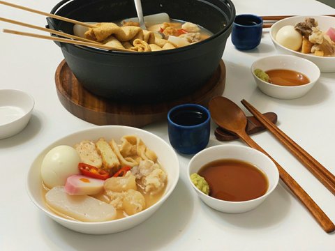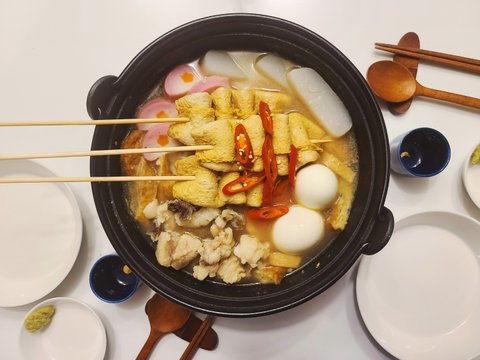 각종 어묵과 곤약 반숙달걀 그리고 스지라고 하는 쫀득쫀득한 소힘줄이 들어갔어요