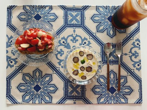 차갑게 먹는 아몬드 마늘 스프 아호블랑코와 토마토카프레제 부르스케타