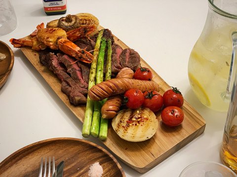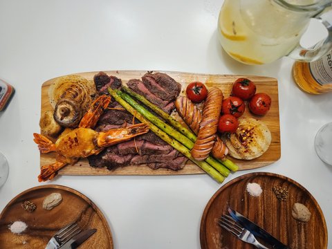 먹고싶은 스테이크 새우 기타등등 구워서 한접시에 몽땅 담아요