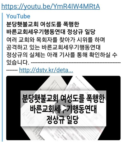 바른교회를 세우는 행동연대 정**이번에 또 남자 성도를 폭행했네요.매번 사람을 상습적으로 폭행하는 이 단체를 해체시켜 주세요..