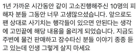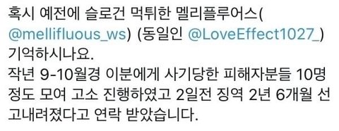 작년 9-10월 김우석 홈마 멜리플루어스가 슬로건 먹튀했는데 피해자 10명이 모여서 고소했고 2일 전에 징역 받았다고 문자왔대 그니까 먹튀를 왜 해서..