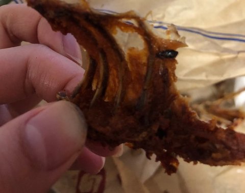 튀김옷에서 바선생을 떼어내 불빛을 비춰보니 다리라인쪽이 타서 쪼그라들어있더라구여 그거보고 바로 화장실로 토하러갔네요ㅠㅠㅠㅠㅠㅠㅠㅠ