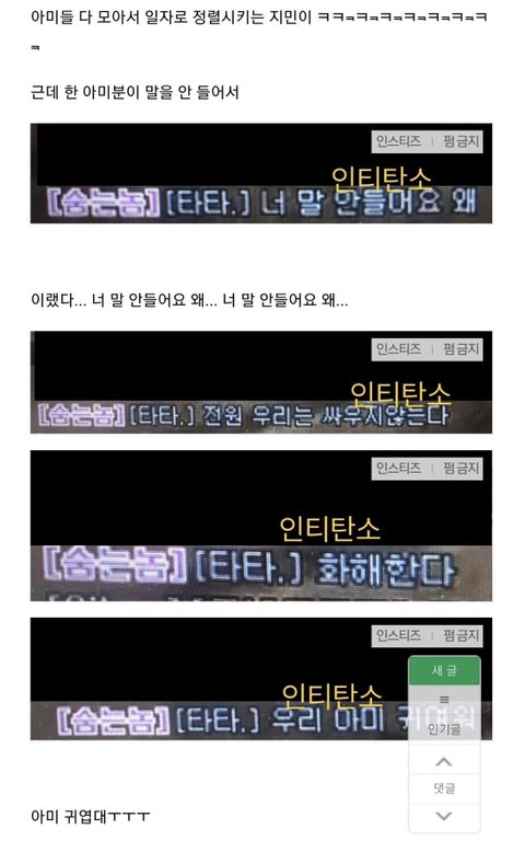 지미닠ㅋㅋㅋㅋ전원 싸우지 않는다 화해한닼ㅋㅋㅋㅋㅋㅋ 우리 아미 귀여워래..하...