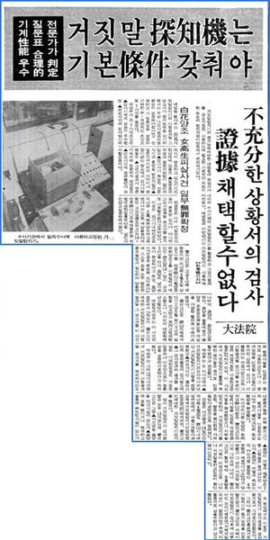 이 4 질문에 대해 강군은 - 없습니다. 아닙니다. 모릅니다. 모릅니다.로 대답했지만 거짓말탐지기는 강군의 대답이 모두 거짓이라고 반응합니다.