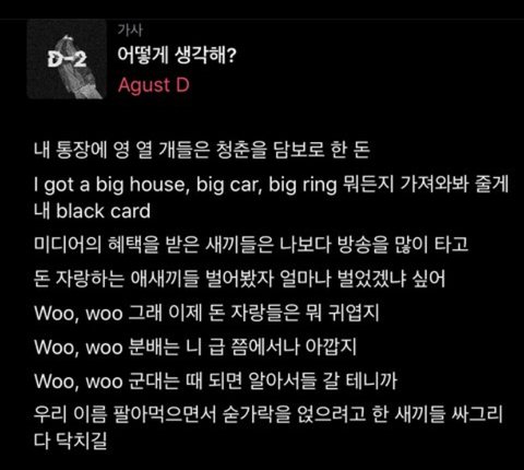 이번 슈가 D-2 수록곡중 어떻게 생각해 가사중