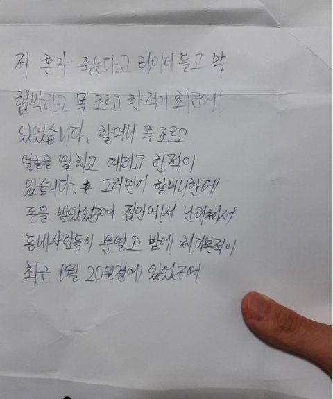 할머니 큰손자가 통장을 뺏어서 그돈을 다 쓰고 있고, 그것도 모자라 이웃들앞에 할머니를 끌고가 , 할머니가 돈을 빌리게 시켰답니다.