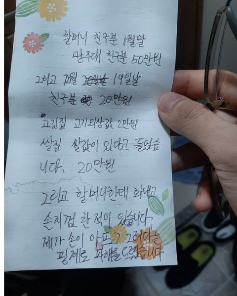 저희 엄마와 아빠는 집근처 이웃들을 다 만나고 다니면서 이야기를 들었고 그동안 손주가 할머니끌고가서 빌렸다는 돈도 다 갚아드렸습니다. 50만원 가량입니다.