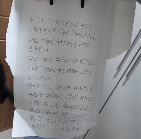 경찰서에 민증 맡기고 돈빌렸다가, 경찰이 자식들한테 전화돌려서 알게 됐습니다. 이웃분들의 말을 듣고 충격받지 않을 수가 없습니다.
